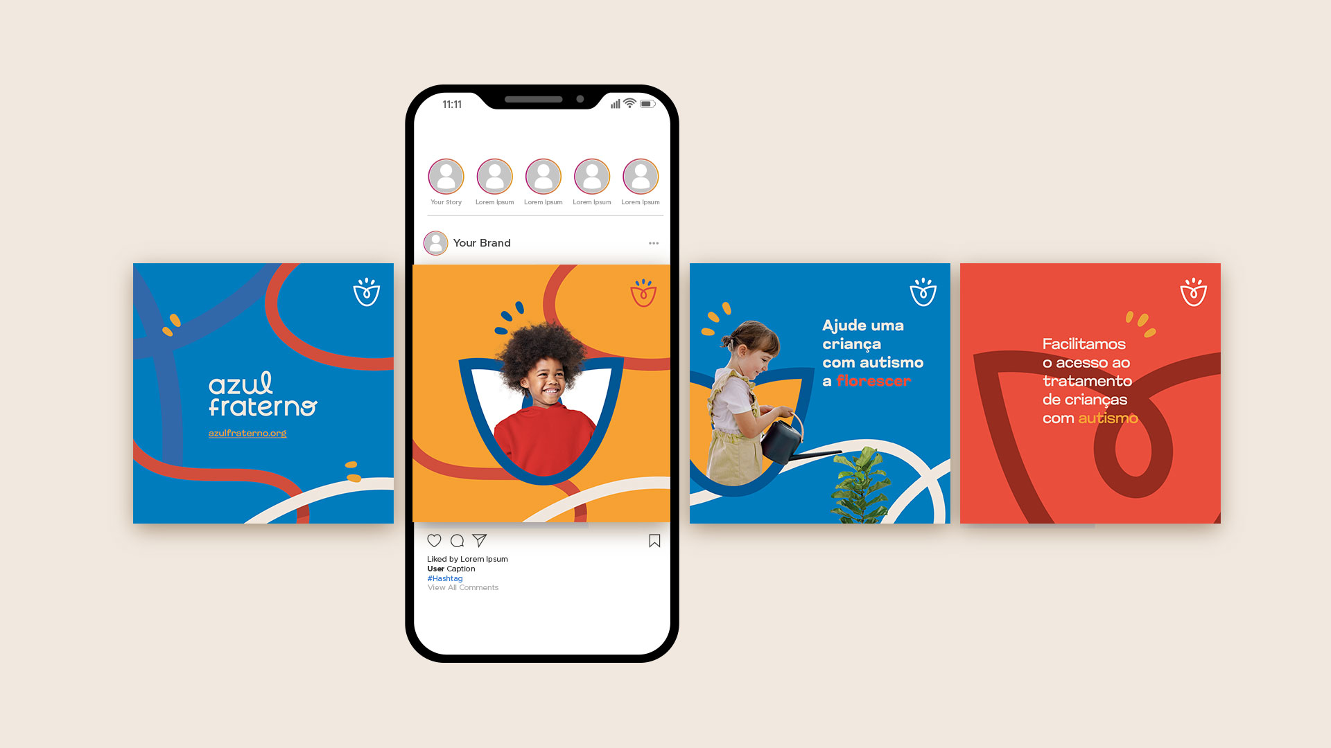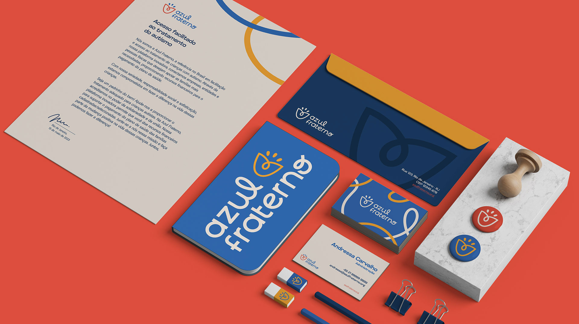 Criamos a identidade visual completa da Azul Fraterno, programa do Instituto da Criança voltado ao apoio de crianças em vulnerabilidade social com diagnóstico de TEA.