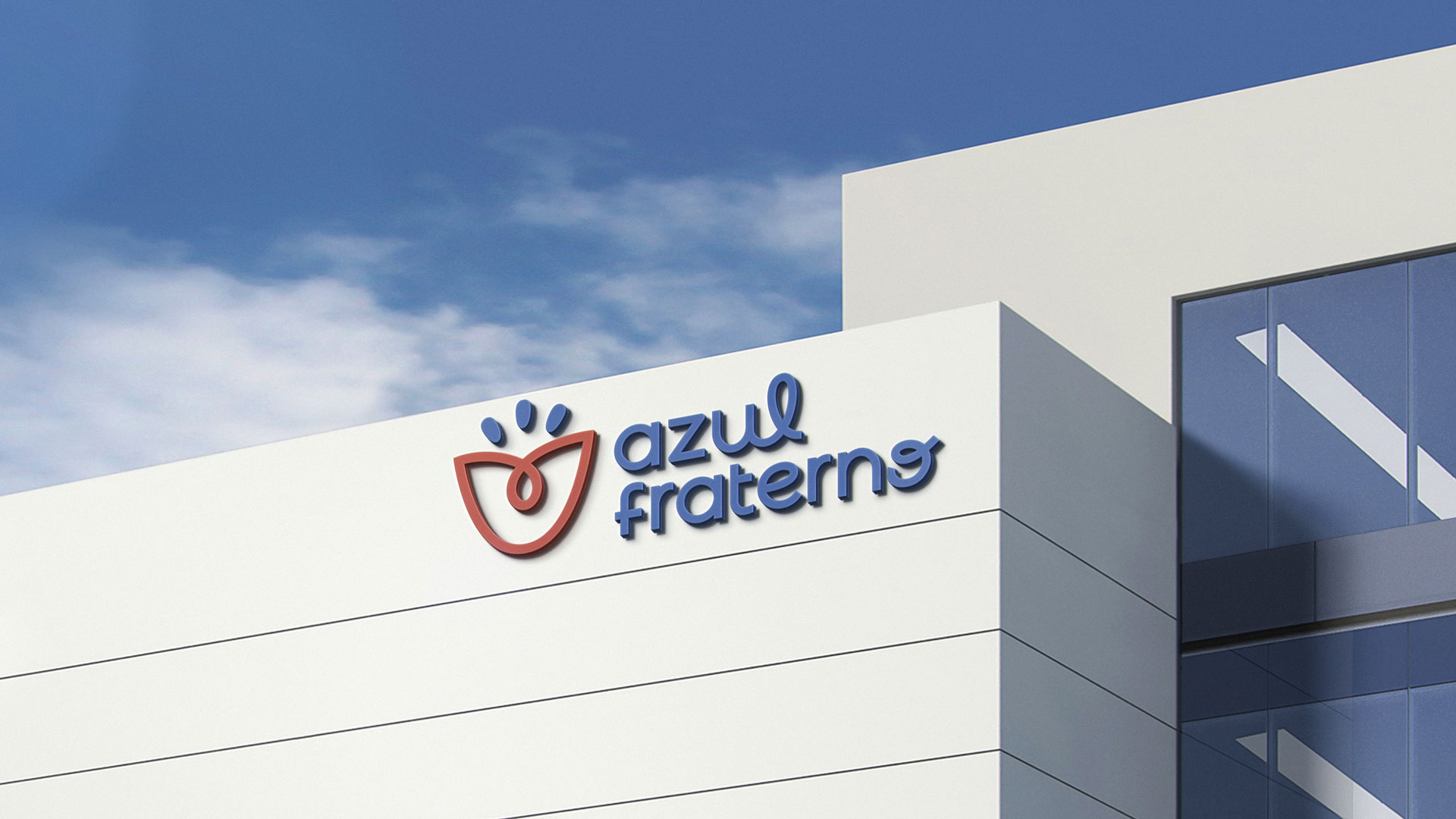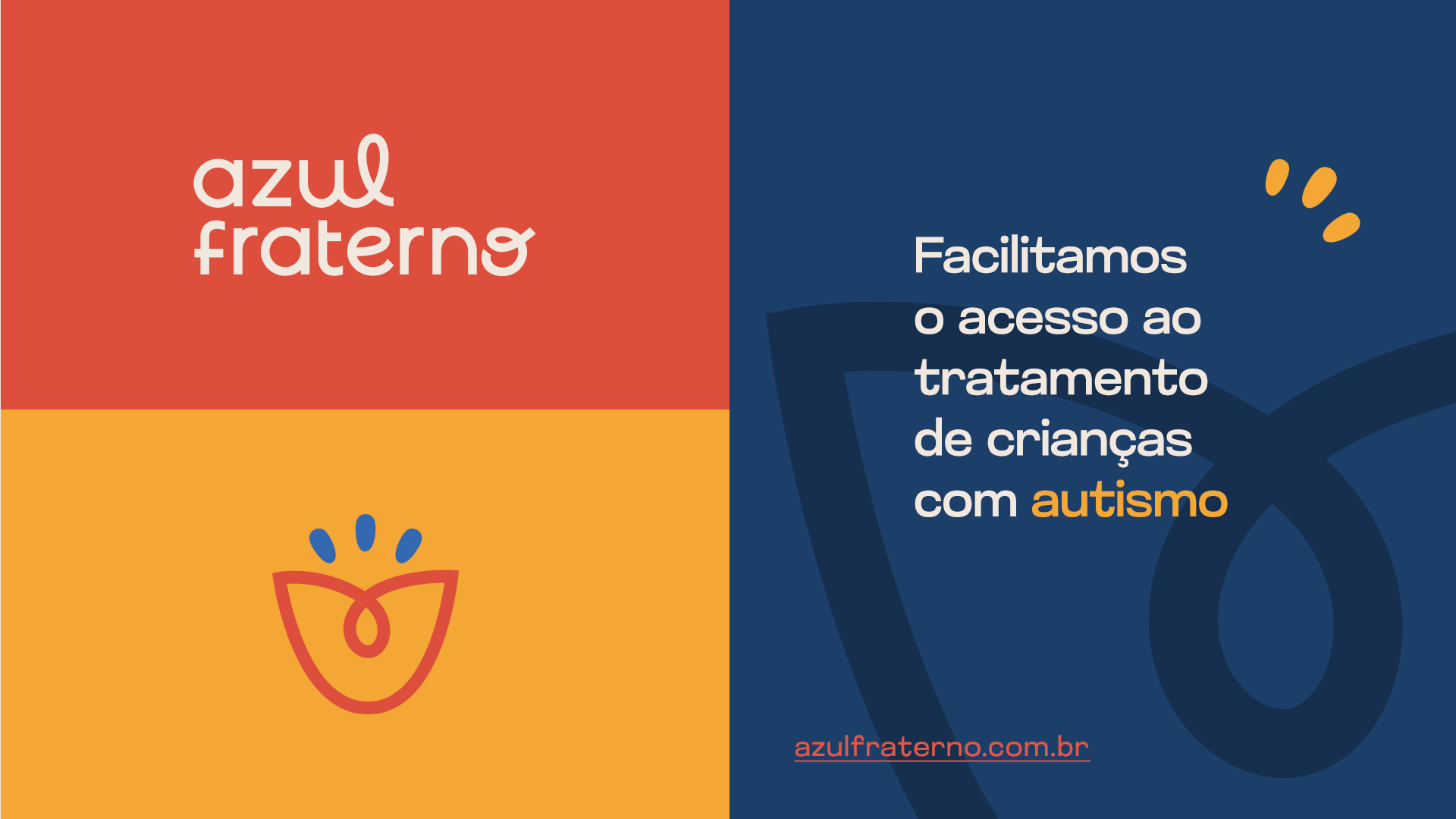 O logo representa três conceitos-chave: desenvolvimento infantil, diversidade do espectro autista e fraternidade. A paleta de cores, as formas e a composição visual comunicam acolhimento e esperança, refletindo o compromisso da Azul Fraterno em mudar a realidade de crianças e suas famílias.
