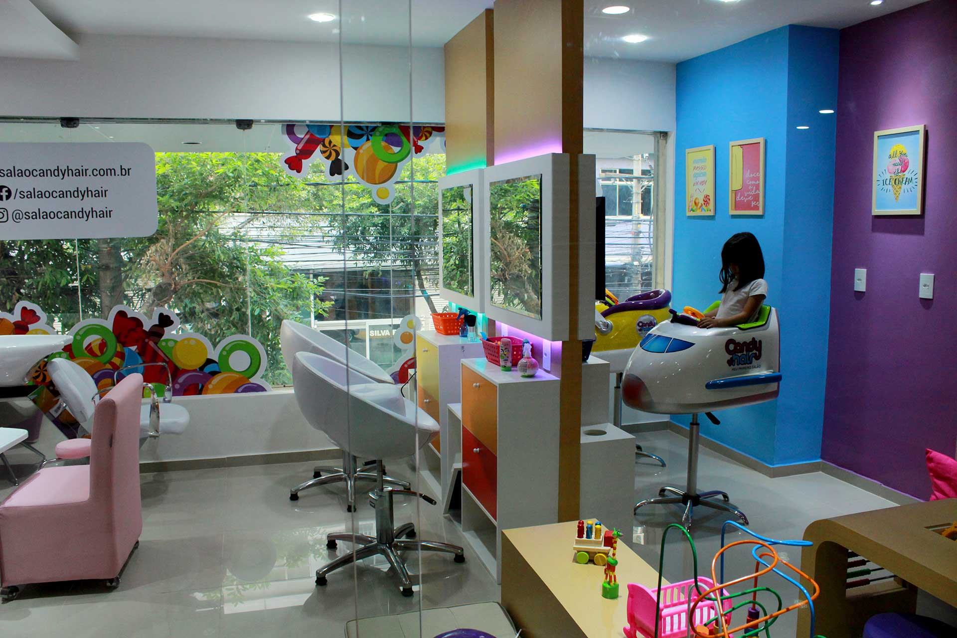 Desenvolvemos o projeto completo do Candy Hair, salão de beleza infantil que une cuidado capilar e universo lúdico. O trabalho contemplou logo, identidade visual, design de ambiente, uniformes e material de fidelização.