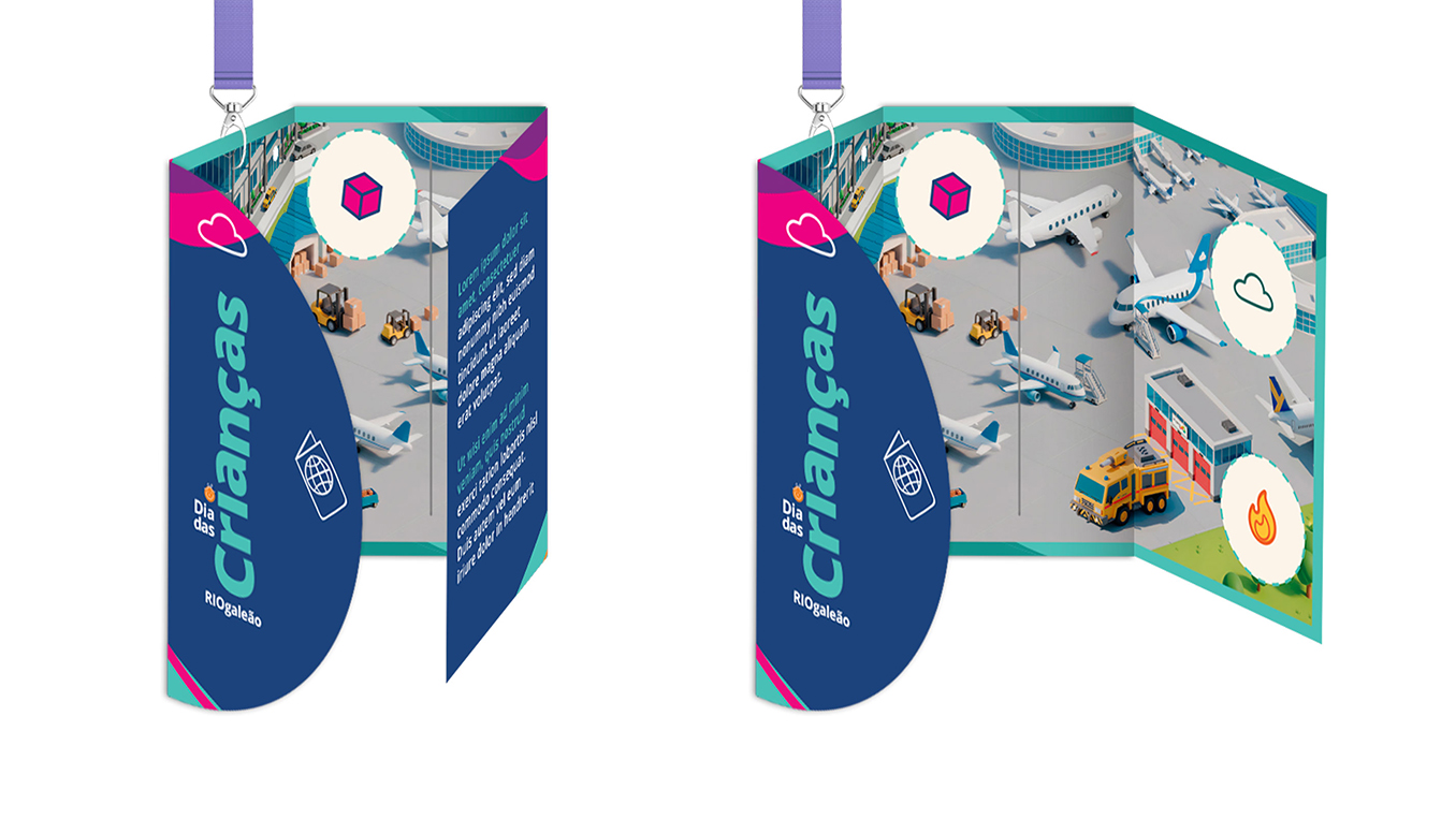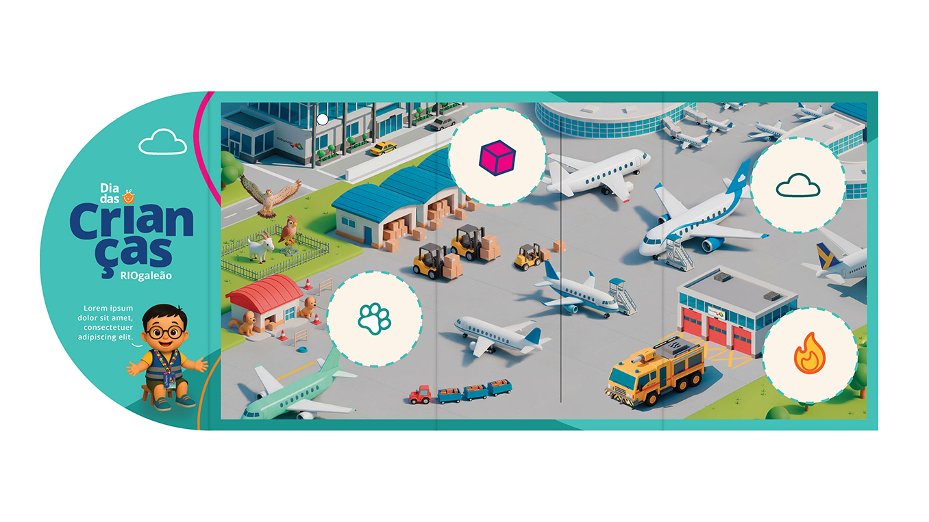 Para a ação de Dia das Crianças do RIOgaleão, o desafio foi transformar uma visita dos filhos dos colaboradores às áreas operacionais do aeroporto em uma experiência lúdica e interativa.