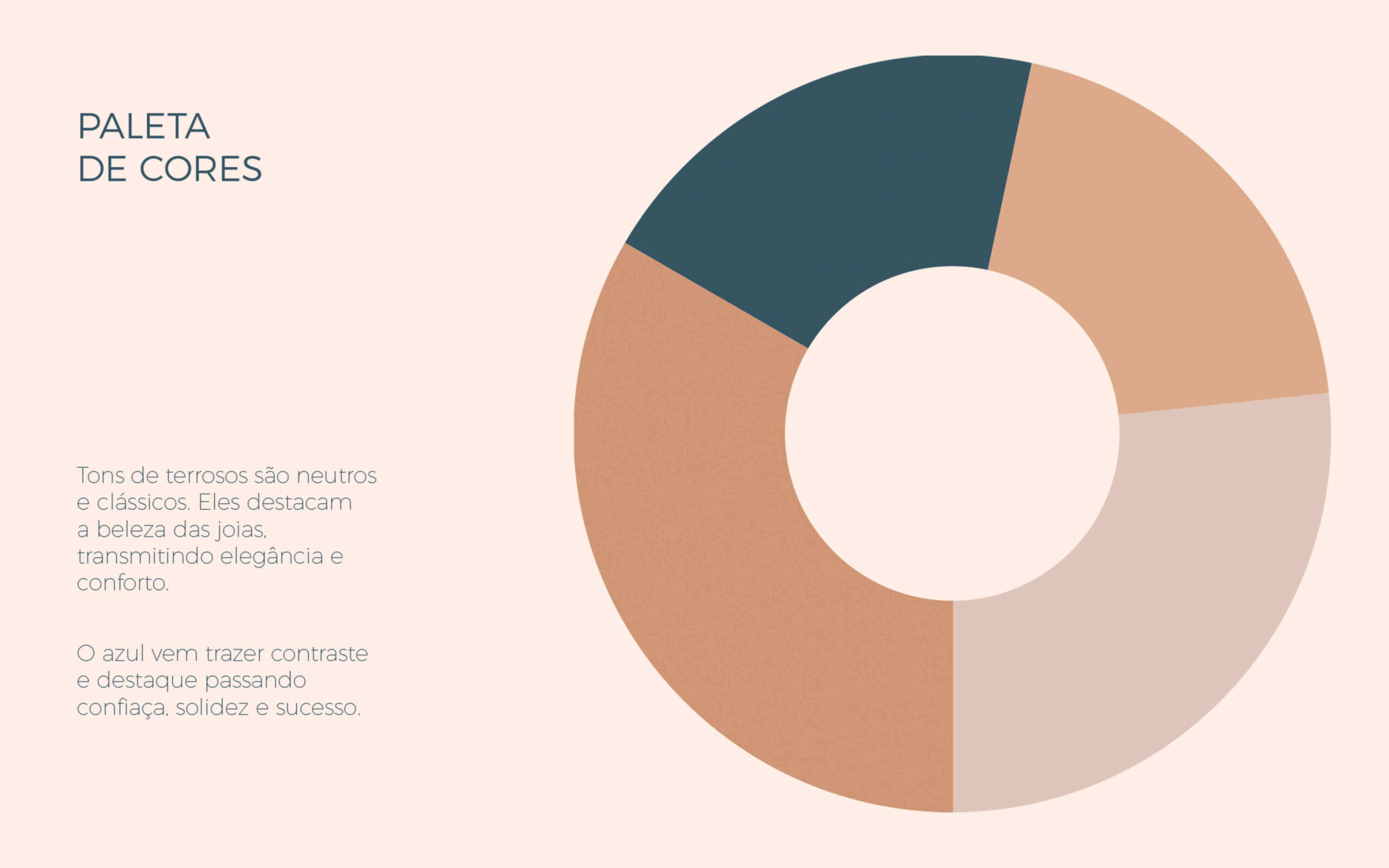 A solução adota linguagem minimalista que traduz a força e singularidade da marca. A paleta combina tons terrosos — clássicos e elegantes — com azul, que traz contraste e contemporaneidade. Cada elemento reforça os pilares da DUE: empoderamento, beleza e autenticidade.