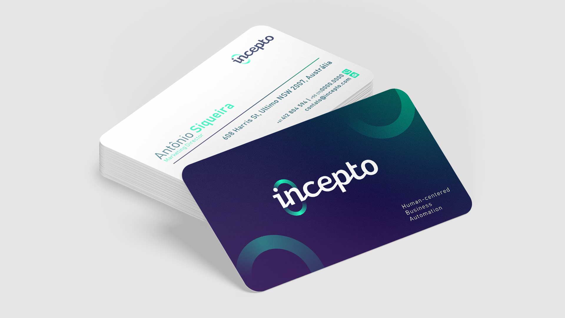 Desenvolvemos o logo e a identidade visual da Incepto, empresa especializada em automação robótica de processos (RPA). A Incepto utiliza robôs digitais para executar processos repetitivos, otimizando tempo e recursos humanos.