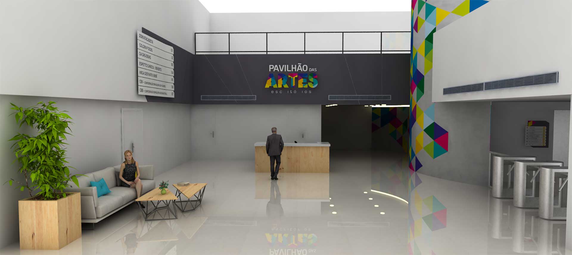 Desenvolvemos o projeto de sinalização e ambientação para os escritórios do Pavilhão das Artes. A proposta integra wayfinding, identidade visual e arquitetura em uma solução única.