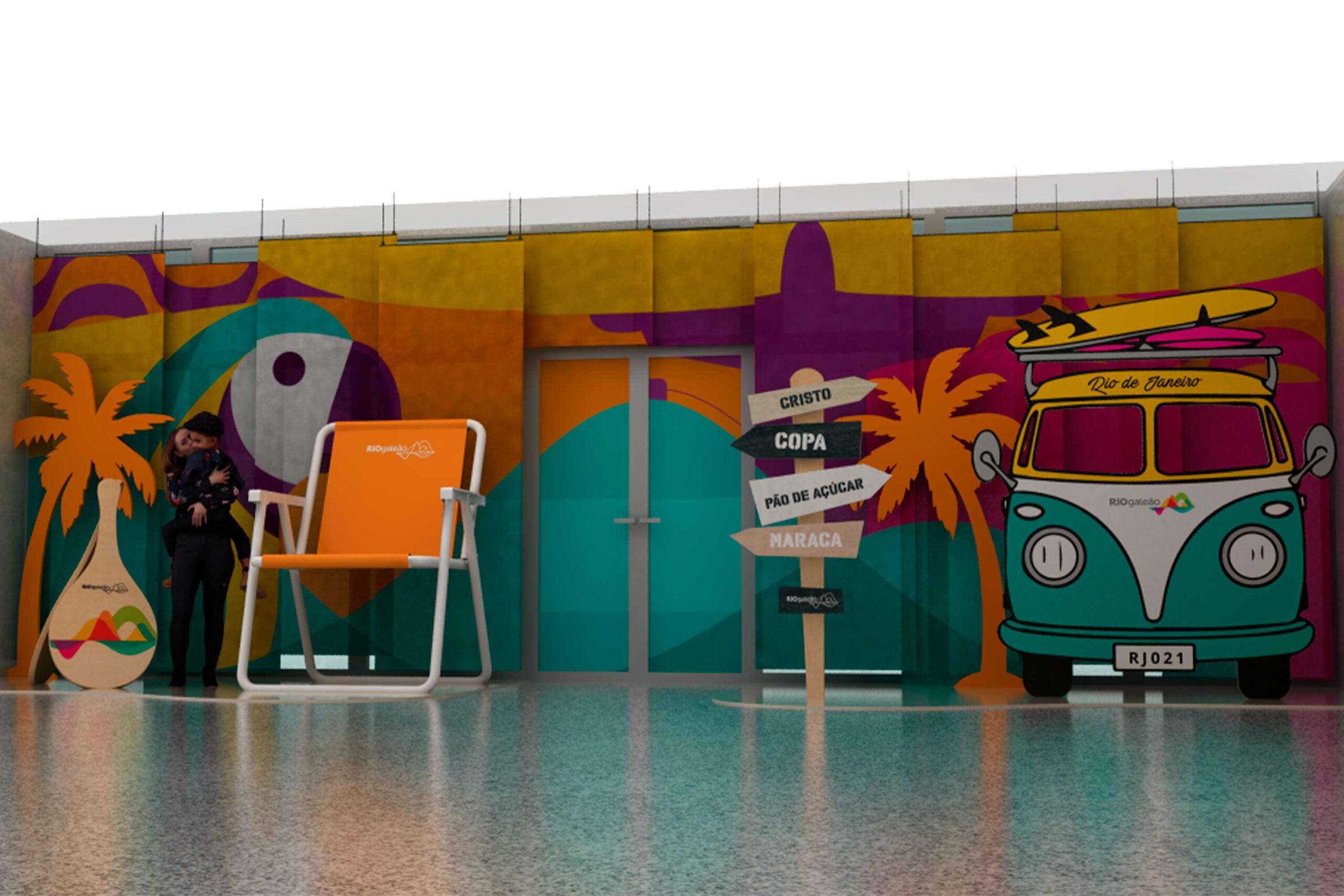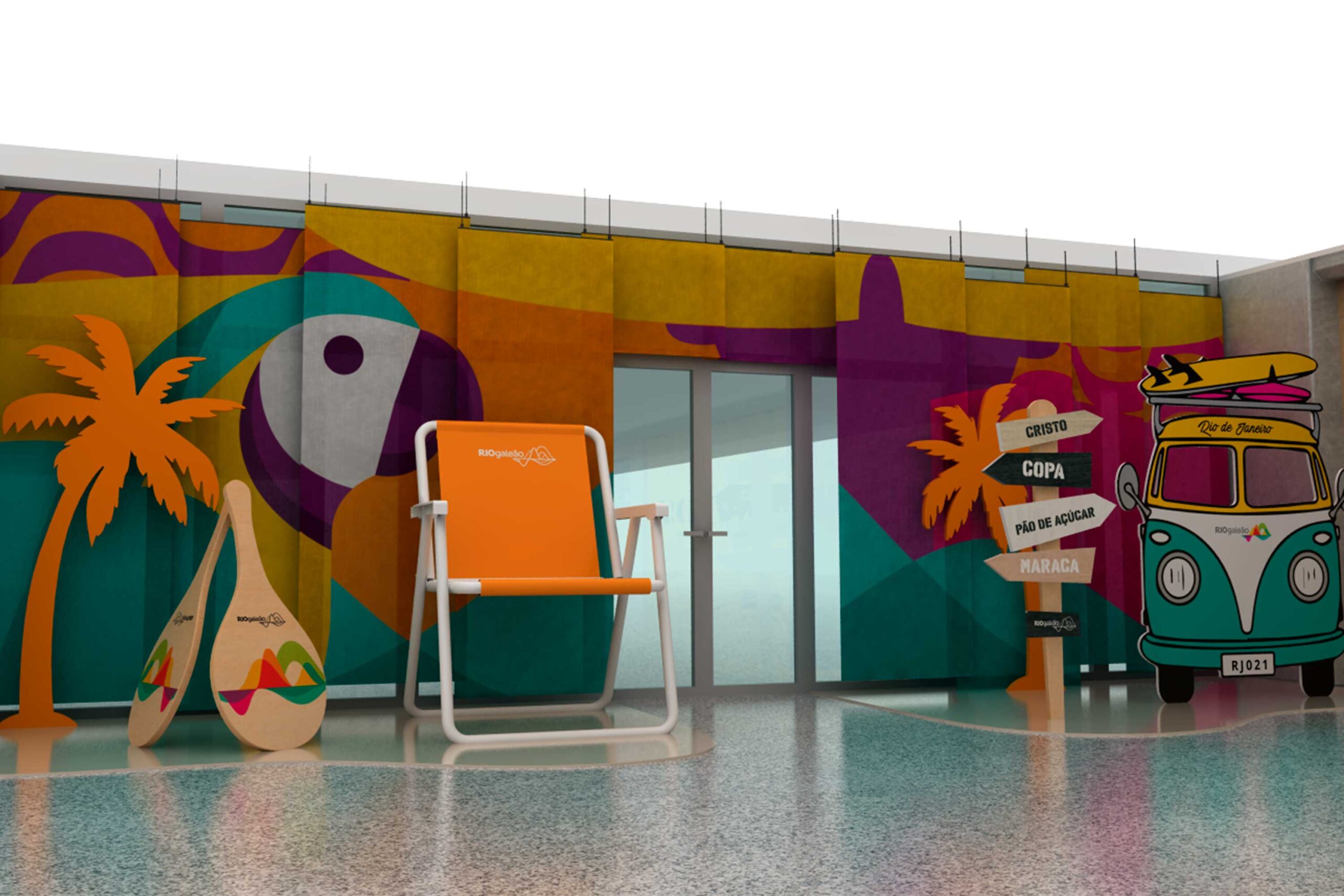Projeto de ambientação desenvolvido para o RIOgaleão, com foco em experiência, identidade cultural e engajamento do público. A proposta transforma o espaço em um cenário instagramável, explorando ícones do Rio de Janeiro como o Cristo Redentor, praias, paisagens tropicais e o lifestyle carioca.