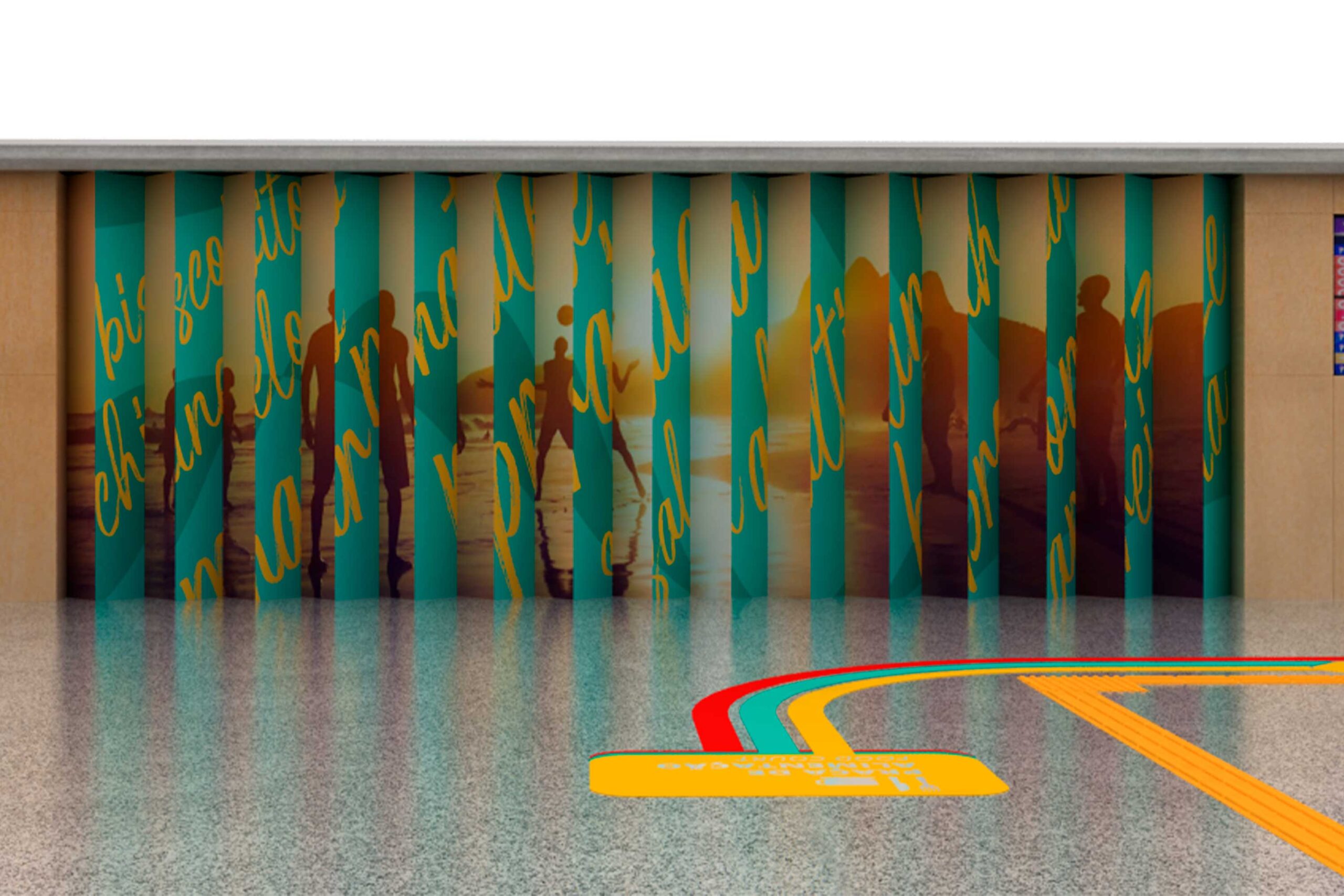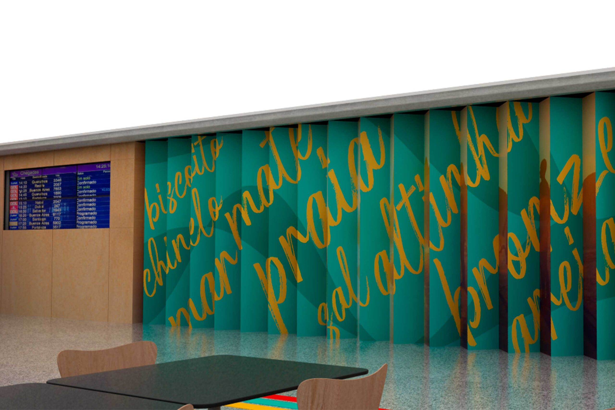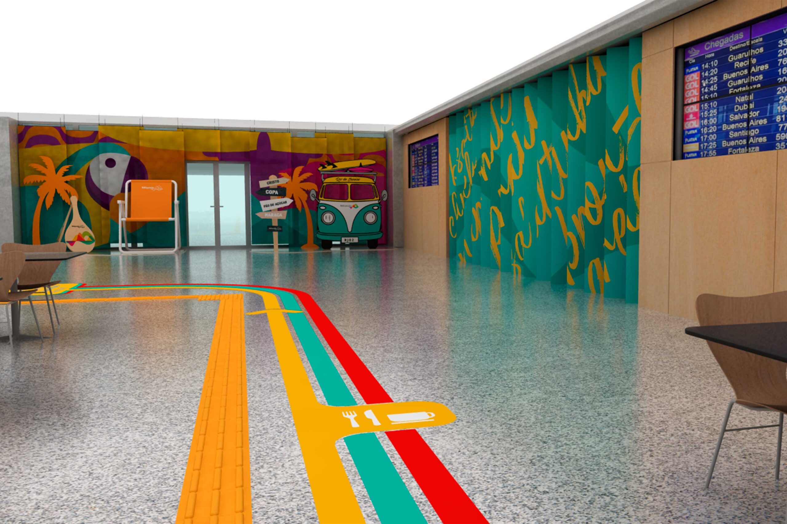 O uso de cores vibrantes, ilustrações autorais e elementos cenográficos cria uma atmosfera acolhedora e memorável, reforçando o posicionamento do aeroporto como porta de entrada da cidade. O projeto valoriza a vivência do usuário, estimula registros espontâneos e fortalece a conexão emocional entre marca, espaço e viajantes.