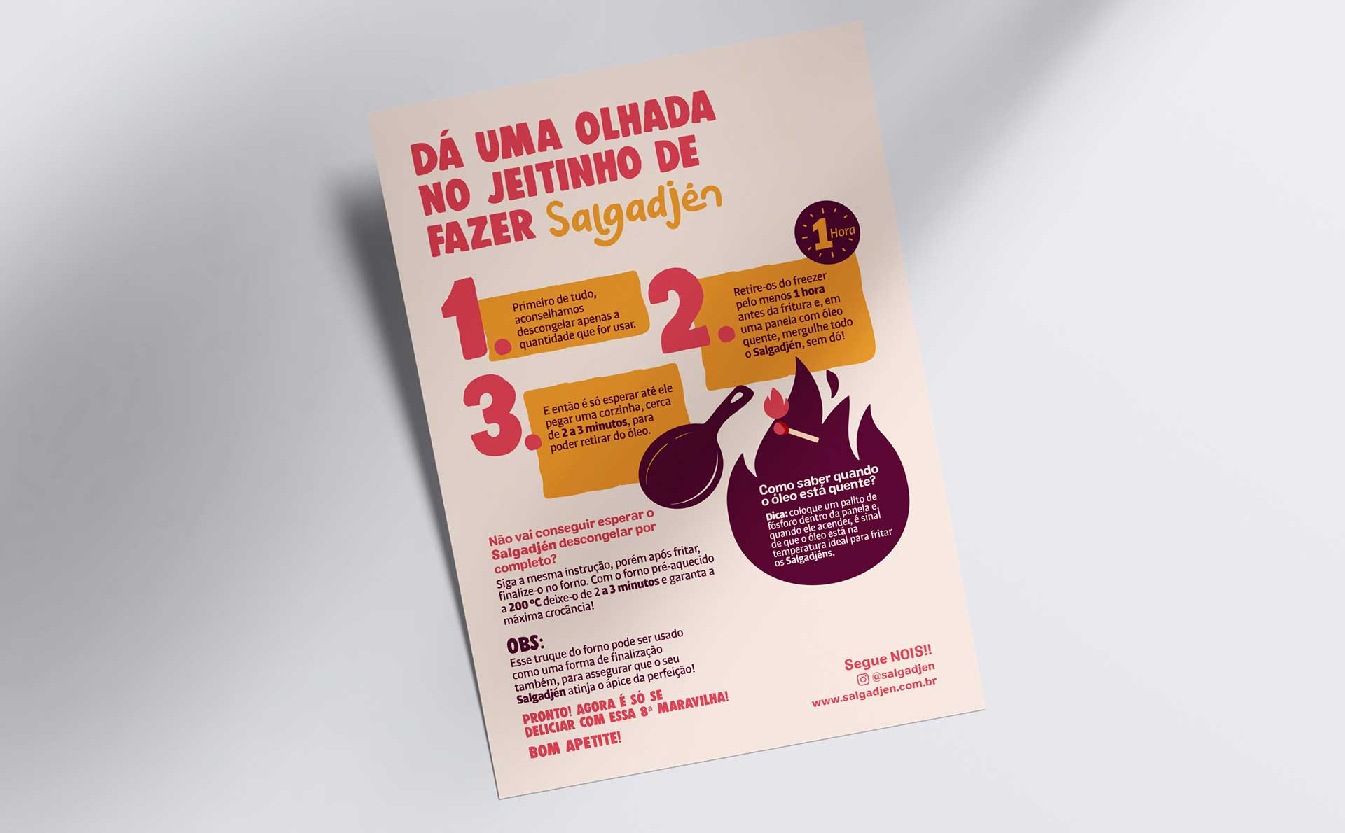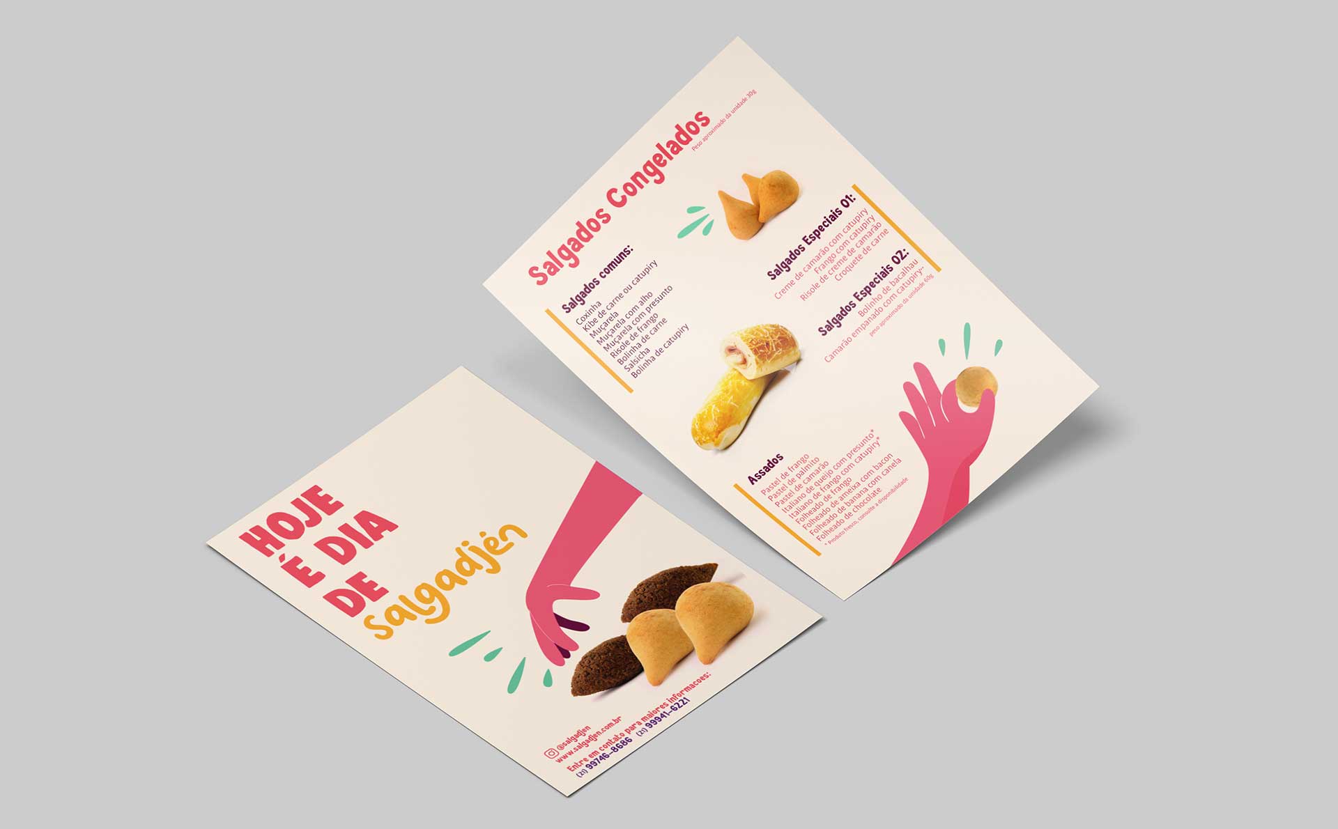 Desenvolvemos o logo e a identidade visual do Salgadjén, marca de salgados que busca comunicar apetite e alegria através de sua presença visual. O conceito trabalha cores e elementos gráficos que estimulam o desejo de consumo, criando identidade convidativa e descontraída. A marca traduz a proposta do Salgadjén: salgados saborosos em ambiente alegre e acolhedor.