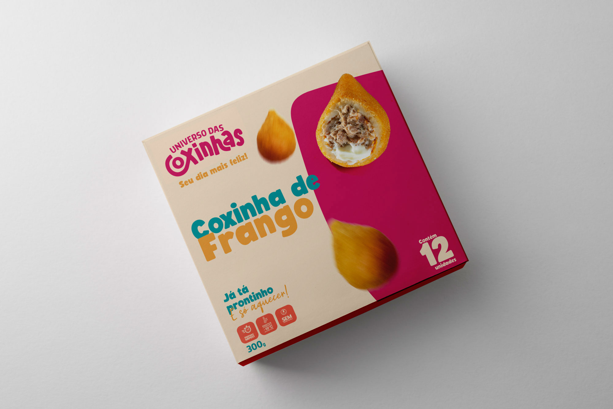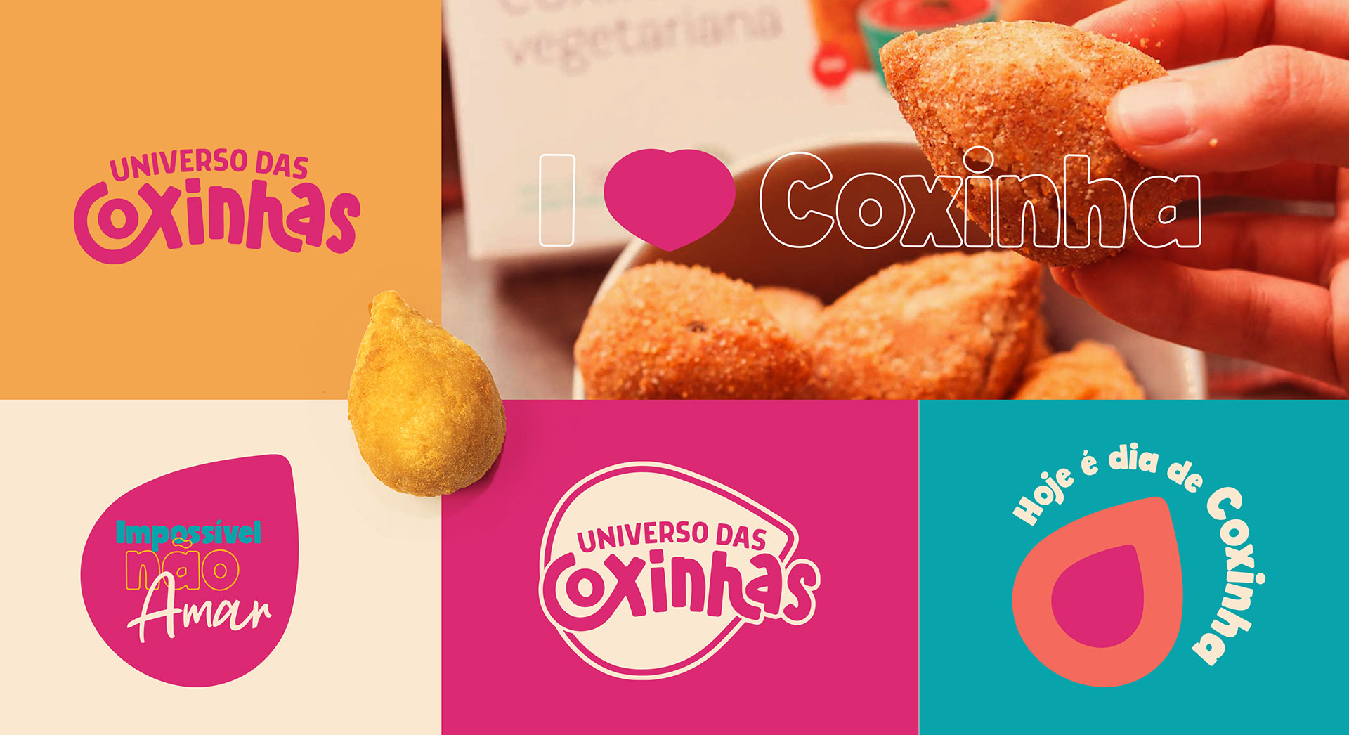 Desenvolvemos a identidade visual do Universo das Coxinhas, marca de alimentação com proposta descontraída e jovem. O desafio era criar uma identidade que comunicasse ao mesmo tempo confiabilidade e o caráter leve e divertido associado ao produto. A solução trabalha com uma linguagem visual jovial e acessível, equilibrando profissionalismo e descontração. O resultado é uma marca que transmite segurança sem perder o humor e a alegria característicos da experiência de consumir coxinha.